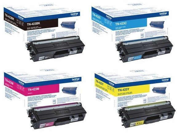 סט טונרים מקורי Brother TN423 הסט כולל 4 טונרים TN423BK טונר שחור מוגדל TN423BK ל-6500 דף TN423C טונר כחול מוגדל TN 423C ל-4000 דף TN423M טונר אדום מוגדל TN423M ל-4000 דף TN423Y טונר צהוב מוגדל TN423Y ל-4000